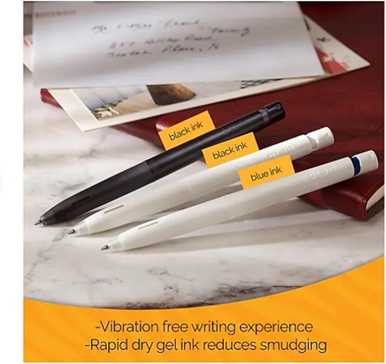 Zebra Pen bLen Retractable Gel Pen offers a truly luxurious writing experience. Translated from Japanese to mean “vibration-free,” this attractive gel pen is tightly engineered for no rattling parts. That means nothing to distract from your writing. The 0.7mm medium point allows for an even flow and delicate writing. Rich black gel ink housed inside a tidy black or white barrel, this ergonomically-designed retractable pen brings comfort to your written work. Low-profile clip easily attaches to pockets, notebooks and folios. Includes 3 black and 3 white barrel pens, plus 4 ink refills. Impress your pen pal, up your bullet journal game or fill out your daily diary with a trusted, continually reliable writing experience. Enjoy the precision of a gel ink pen in your home and office writing with a pen you will be proud to leave on your desktop.