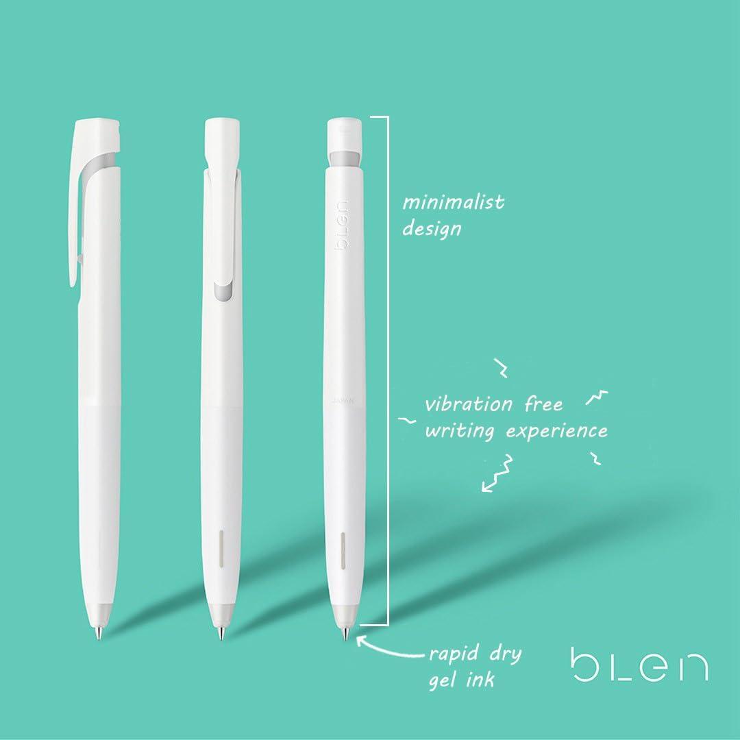 Zebra Pen bLen Retractable Gel Pen offers a truly luxurious writing experience. Translated from Japanese to mean “vibration-free,” this attractive gel pen is tightly engineered for no rattling parts. That means nothing to distract from your writing. The 0.7mm medium point allows for an even flow and delicate writing. Rich black gel ink housed inside a tidy black or white barrel, this ergonomically-designed retractable pen brings comfort to your written work. Low-profile clip easily attaches to pockets, notebooks and folios. Includes 3 black and 3 white barrel pens, plus 4 ink refills. Impress your pen pal, up your bullet journal game or fill out your daily diary with a trusted, continually reliable writing experience. Enjoy the precision of a gel ink pen in your home and office writing with a pen you will be proud to leave on your desktop.