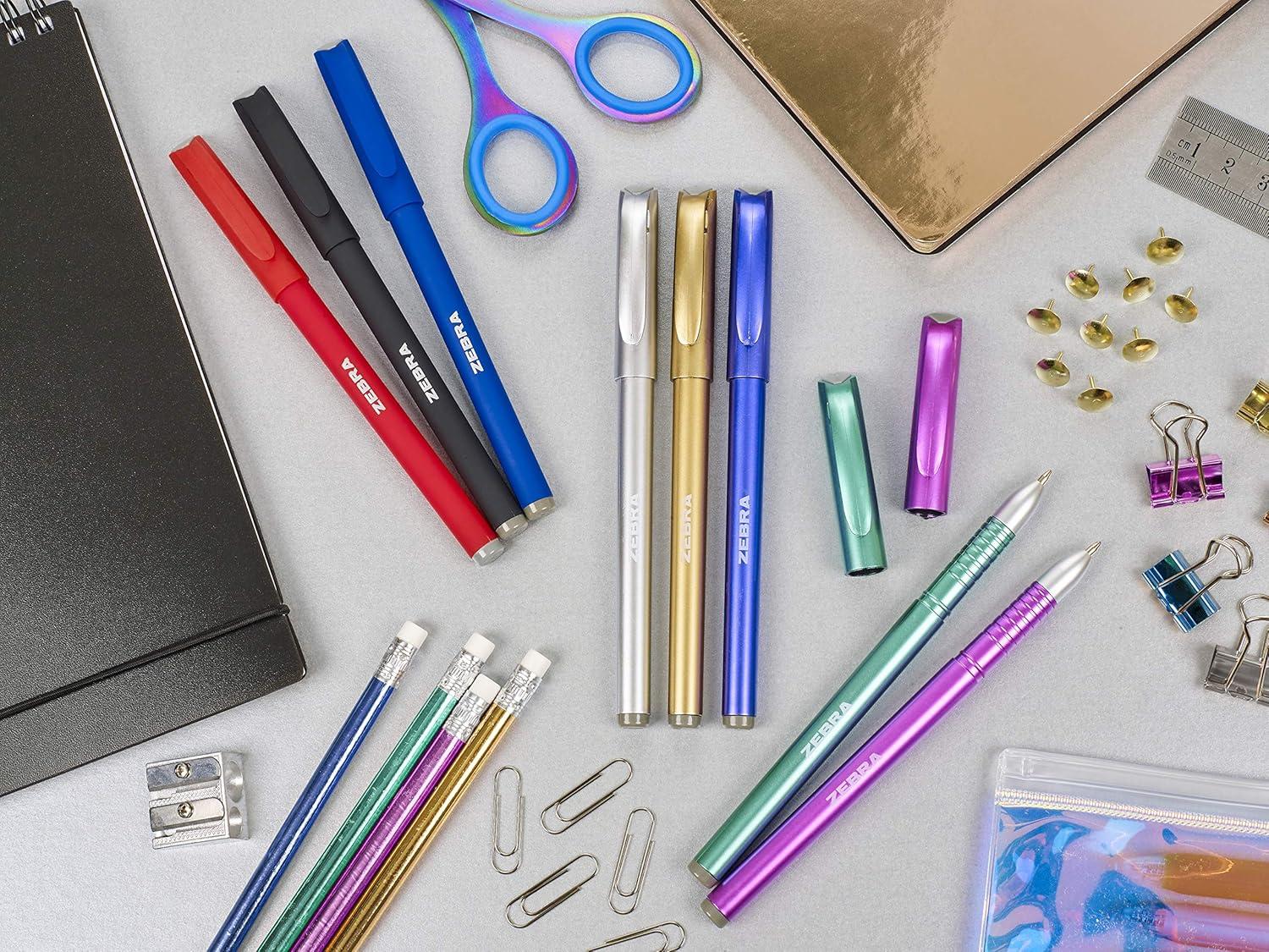 Want a pen that's the perfect mix of functionality and creativity? Then Zebra's Doodlerz Gel Stick Pens are perfect for you! Available in a rainbow of pastel and neon colors with a bold 1.0mm point and water-based pigment ink that flows freely, these colorful gel pens are perfect for all of your writing and crafting needs. Each glitter gel pen features a triangular ergonomic grip for increased comfort and a translucent barrel that indicates the ink color and allows you to easily monitor your ink supply. The matching pen cap features a convenient pocket clip for quick and easy access. The convenient reusable storage case allows you to keep all your pens organized at home or on-the-go so you can doodle to your heart's content wherever you are. Explore the never-ending possibilities for color-coding, sketching, journaling, and embellishing with Zebra Doodlerz Gel Stick Pens! This gel pen set contains 10 glitter gel pens in assorted colors.