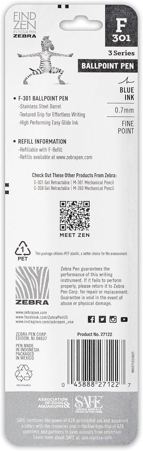 Be the first to review “Zebra Pen F-301 Ballpoint Fine Point 0.7mm Stainless Steel Retractable Ballpoint 4-Pack – Easy-Glide Ink, Non-Slip Grip, Metal Clip, Refillable with F-Refill, Professional Design (27174)(Blue)”
