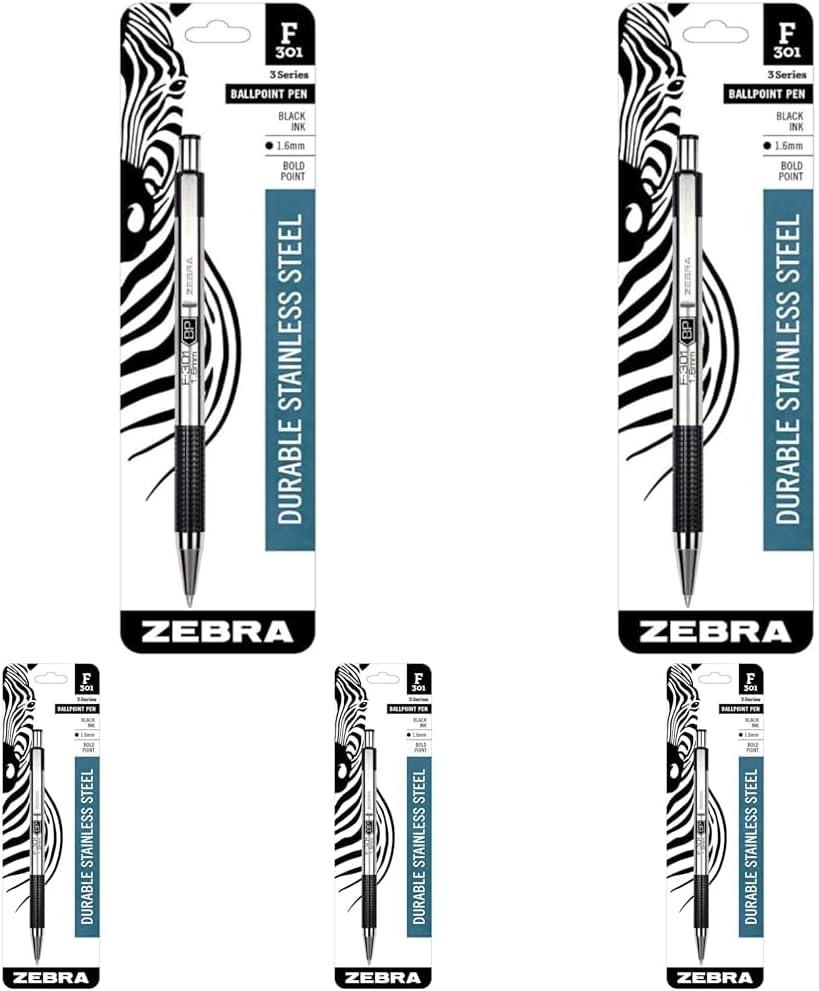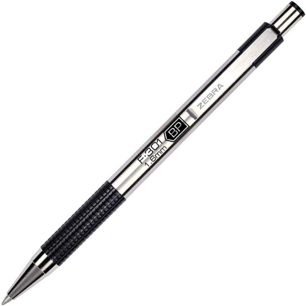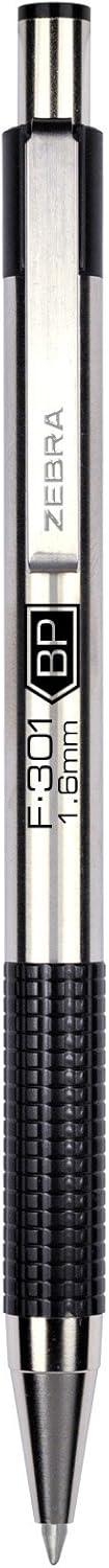 Zebra Pen F-301 Retractable Ballpoint Pen is sleek, sophisticated and easy to sanitize. This hard-working metal pen brings industry-leading precision and stability to your writing. The refillable F-301 has a metal plunge, clip and cone for an executive look. Retractable ballpoint pen has black ink and a 1.6mm bold point tip. Corrosion resistant, stainless steel barrel is easier to sanitize than plastic. Shorter barrel slips easily into shirt pockets. Comfort grip matches barrel accents. Metal clip readily attaches to a notebook, planner, work bag or briefcase pocket. This 12-count pack of attractive pens is perfect for home, school or office. Clean and stylish, this trusted pen is suitable for boardrooms, courtrooms, classrooms, medical settings, offices and job sites. It’s the right pen for any job.