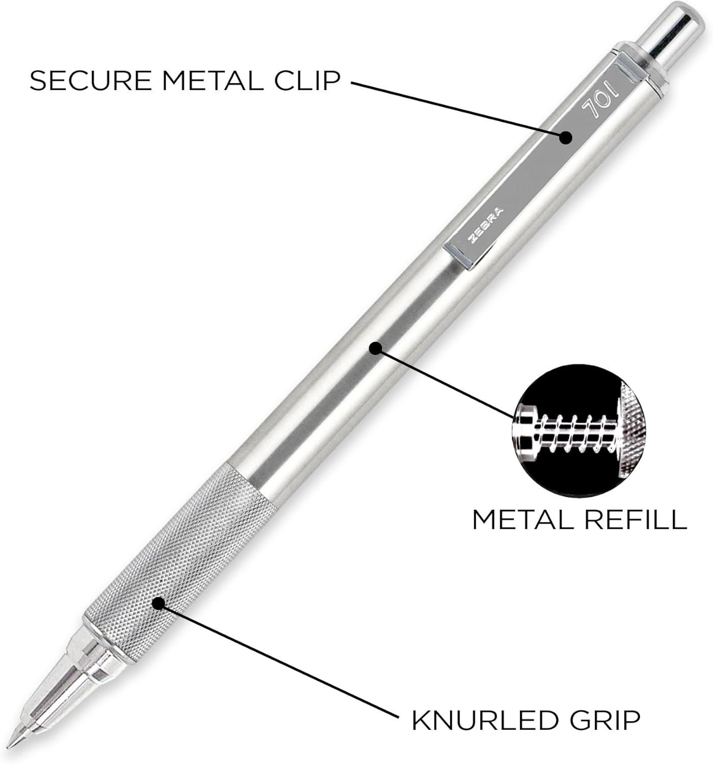 Zebra Pen F-701 Retractable Ballpoint Pen, 0.8mm Fine Point, Stainless Steel Barrel, Ideal for Office Supplies, School Supplies & Teacher Supplies, Black Ink, 4-Pack Plus 2 Refills (50113)(Black B)