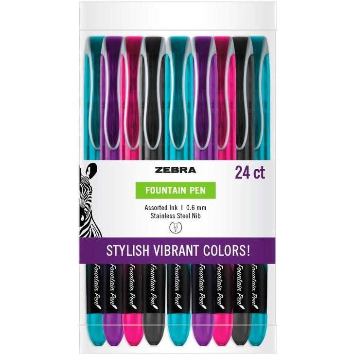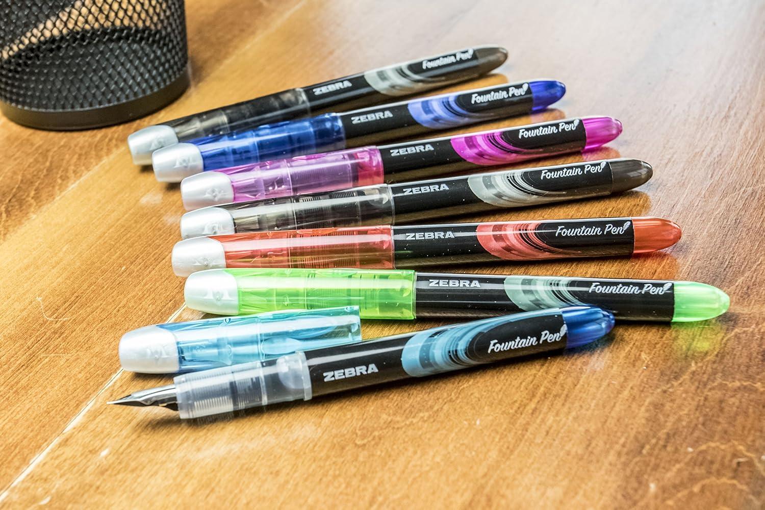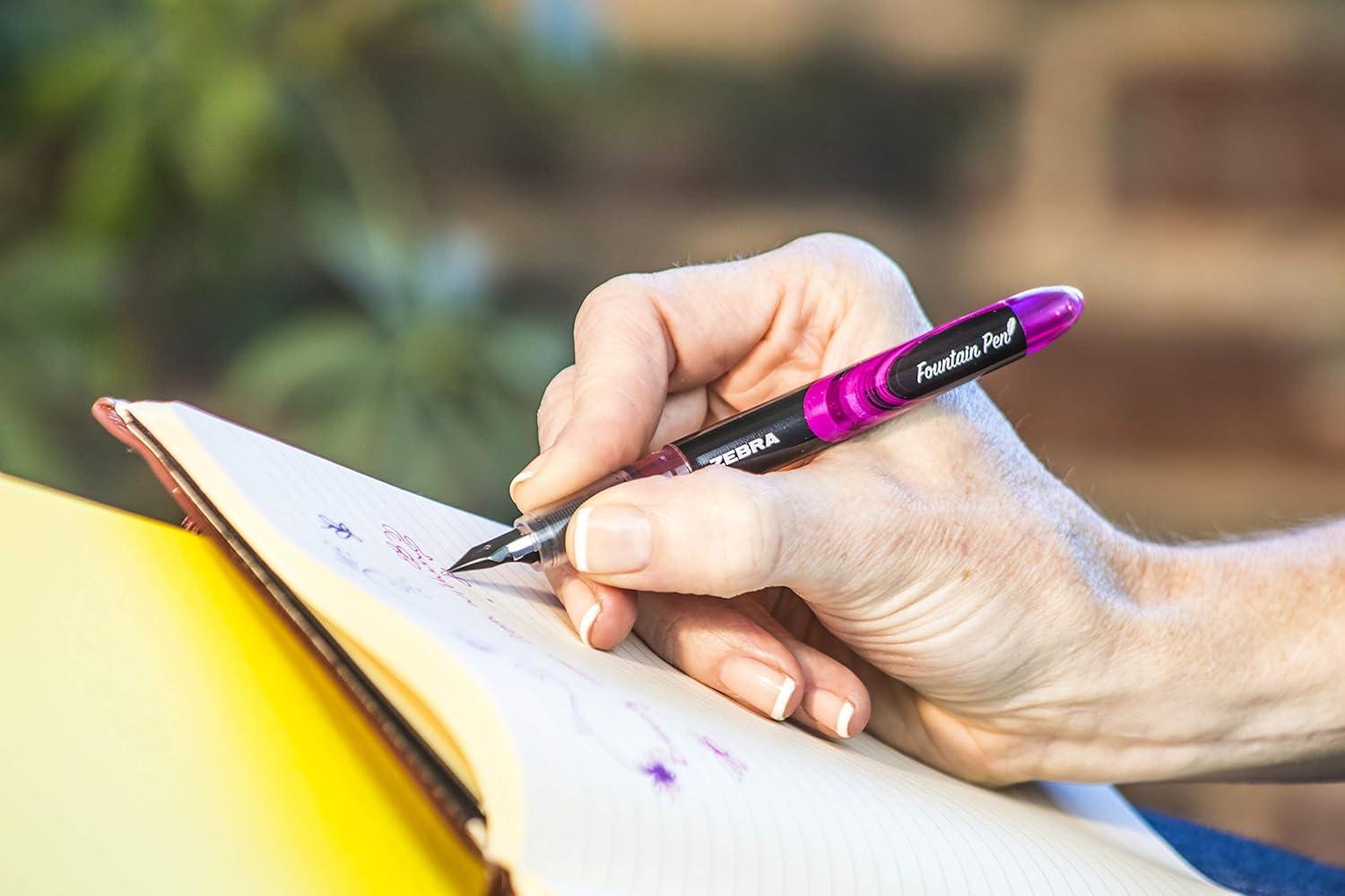 Zebra Pen Fountain Pen Set, Fine Point 0.6mm, Black Non-Toxic Ink, Stainless Steel Nib, Disposable, 2-Pack (48312).
