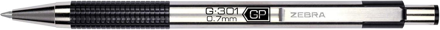 Zebra Pen G-301 Retractable Gel Pen, 0.7mm Medium Point, Stainless Steel Barrel, Ideal for Office Supplies, School Supplies & Teacher Supplies, Black Ink, 12-Pack (41310)(Black C)