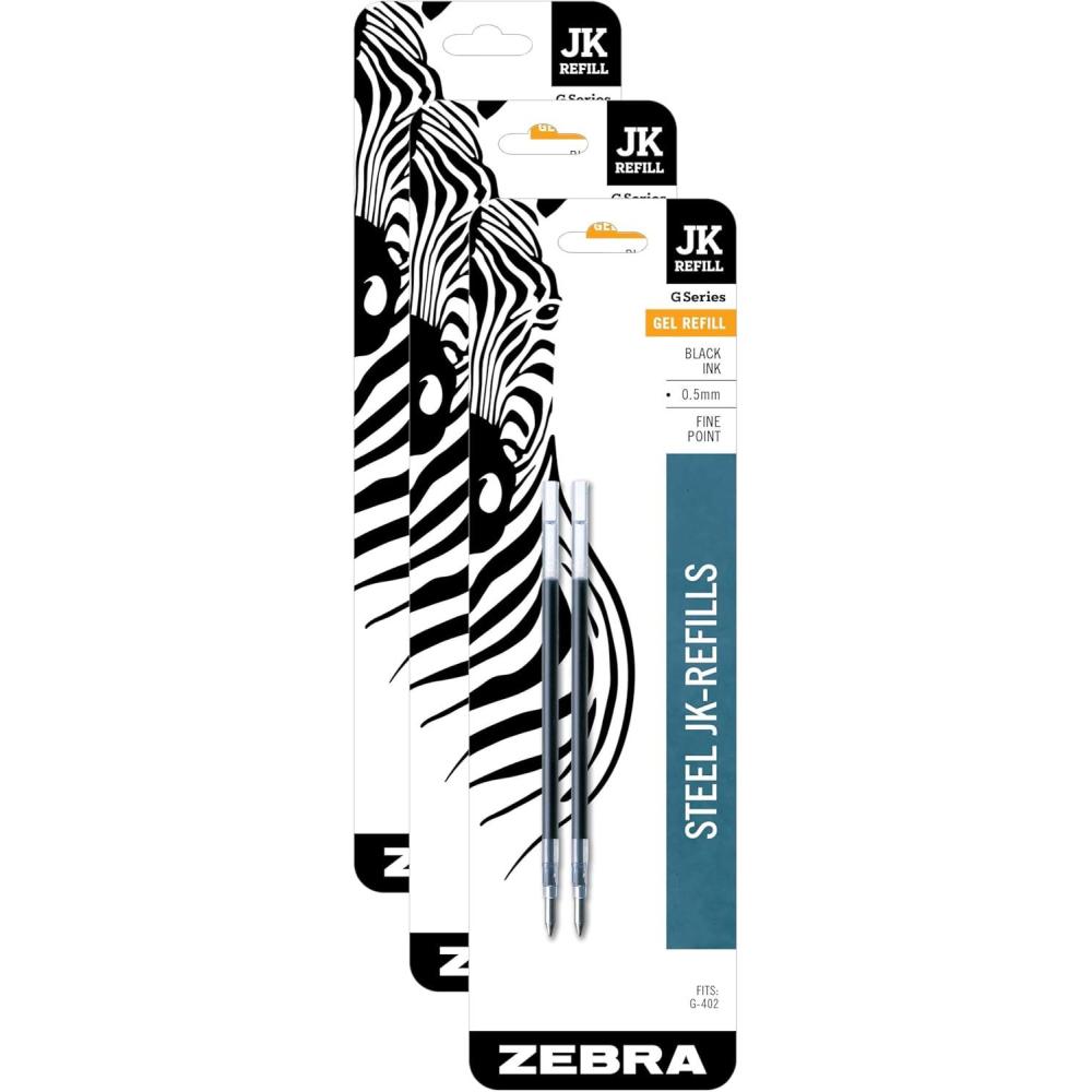 Zebra Pen G-Series Stainless Steel Gel Ink Pen Refill, 2-Pack Black Ink, 0.5mm Fine Point JK-Style, Smooth Writing, Ideal for Everyday Use (88012)(2 Count (Pack of 3))
