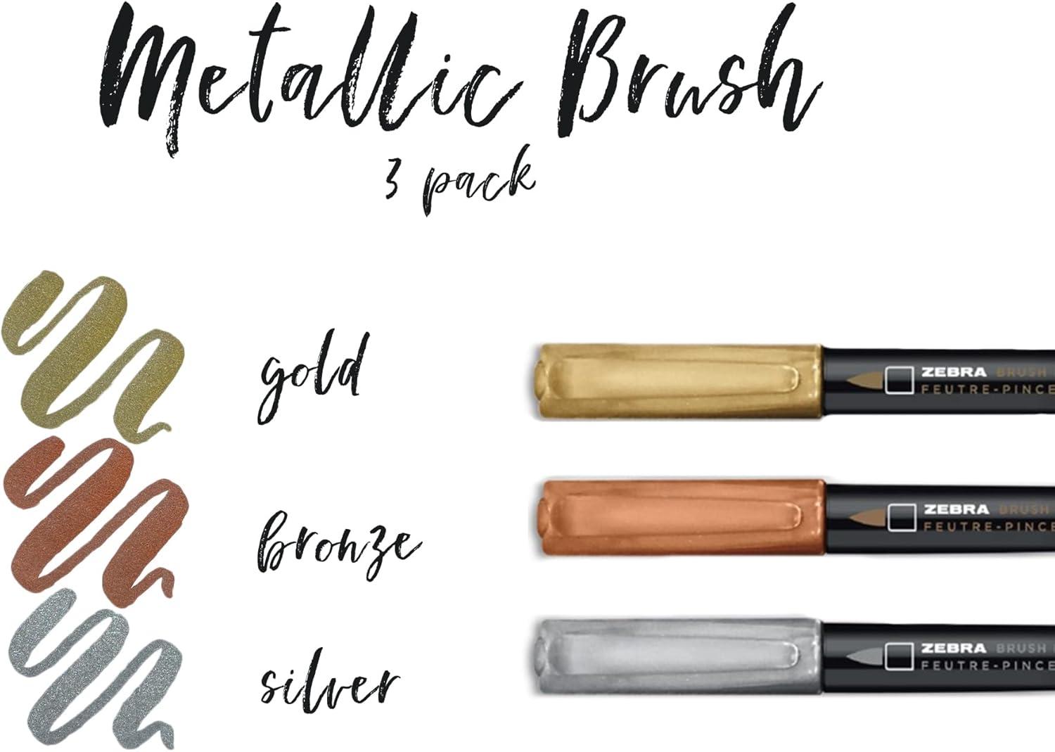 Zebra Pen Metallic Brush Pen, Medium Point, Pigment Ink, Assorted Colors, 7-Pack (01607)(1 Count (Pack of 7))