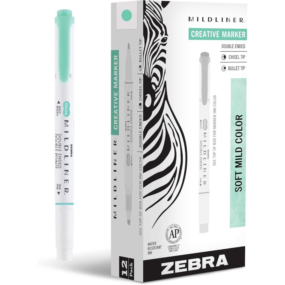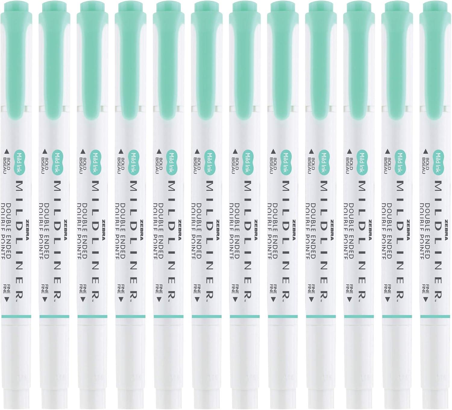 Zebra Pen Mildliner Dual-Tip Highlighters, Broad and Fine Tips, Ideal for Bible Highlighting, No Bleed, School Supplies, Teacher Supplies, and Office Supplies, Mild Violet Ink, 12-Pack (78180upc)(Blue-Green)