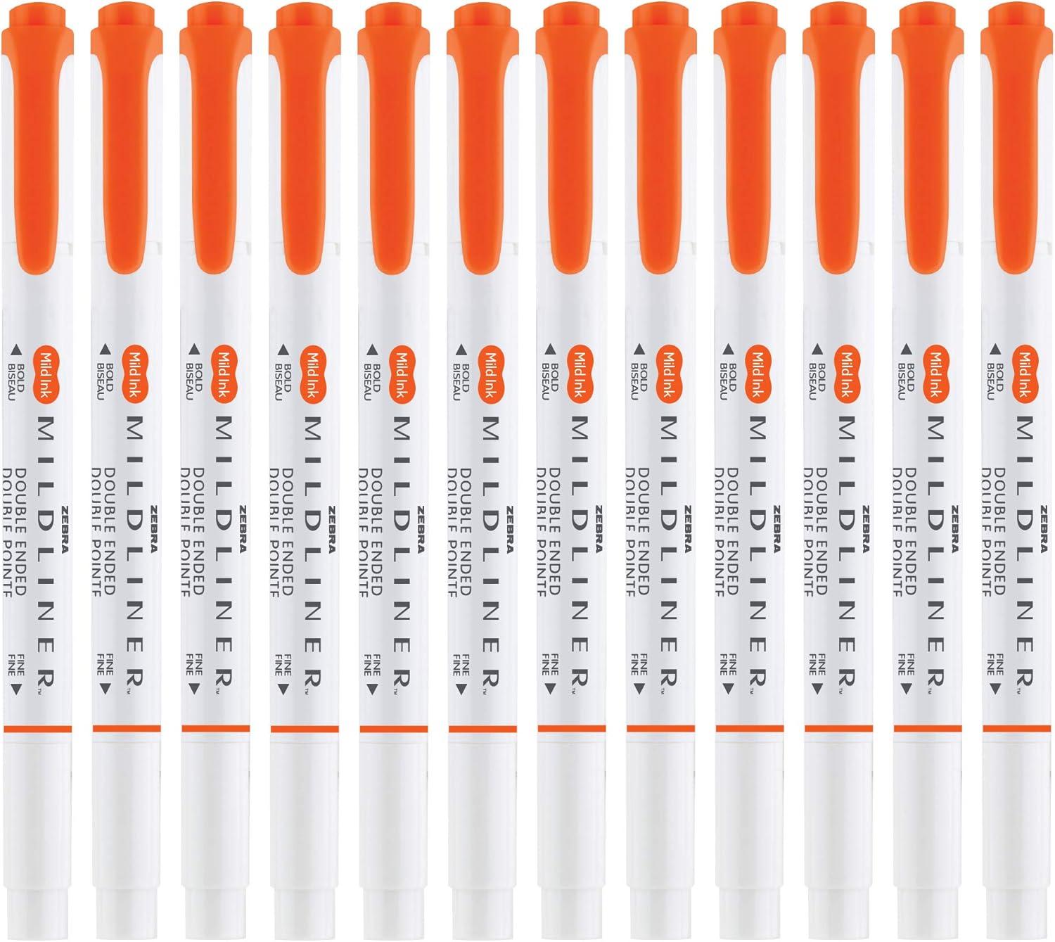 Zebra Pen Mildliner Dual-Tip Highlighters, Broad and Fine Tips, Ideal for Bible Highlighting, No Bleed, School Supplies, Teacher Supplies, and Office Supplies, Mild Violet Ink, 12-Pack (78180upc)(Orange)