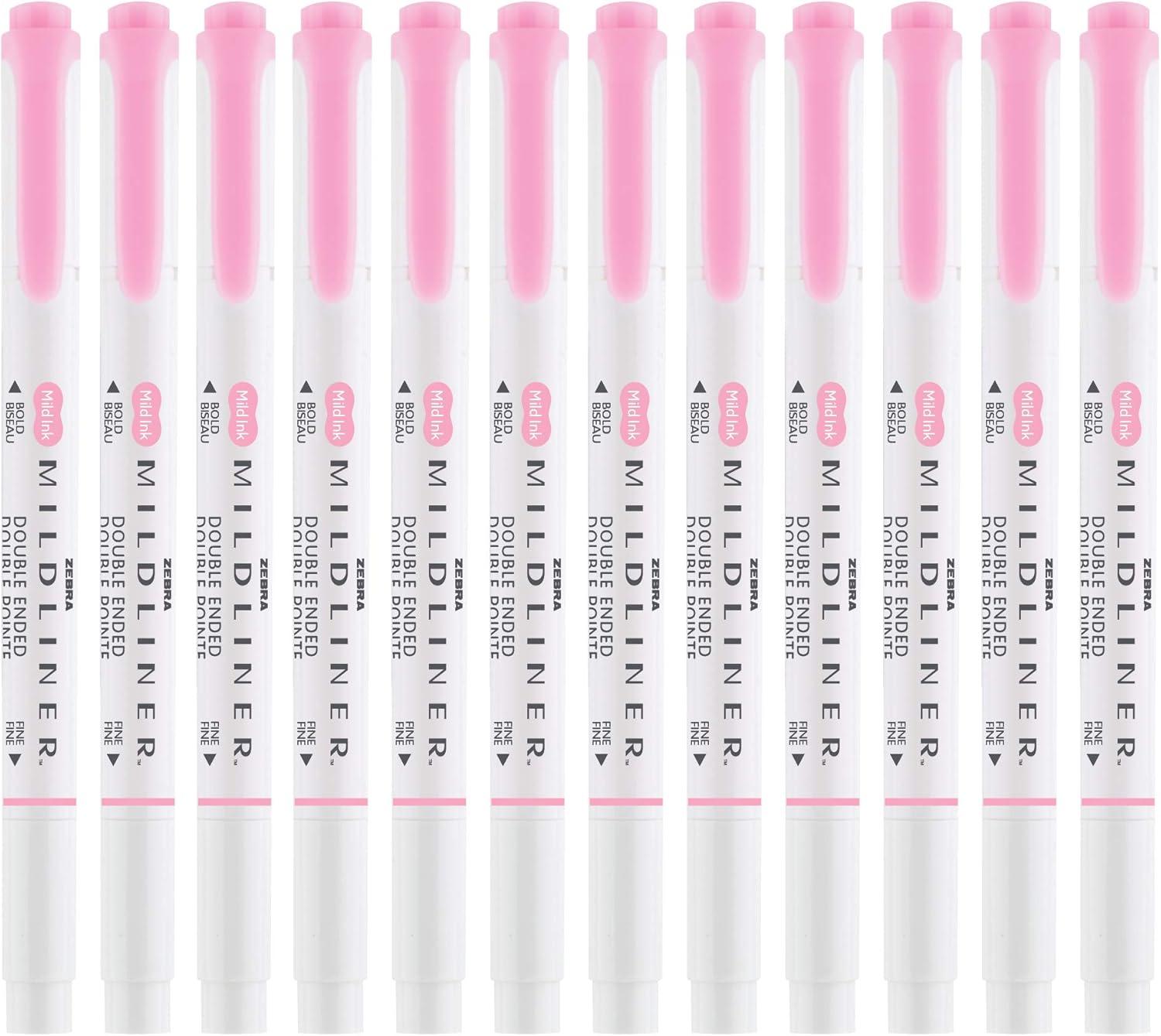 Zebra Pen Mildliner Dual-Tip Highlighters, Broad and Fine Tips, Ideal for Bible Highlighting, No Bleed, School Supplies, Teacher Supplies, and Office Supplies, Mild Violet Ink, 12-Pack (78180upc)(Pink)