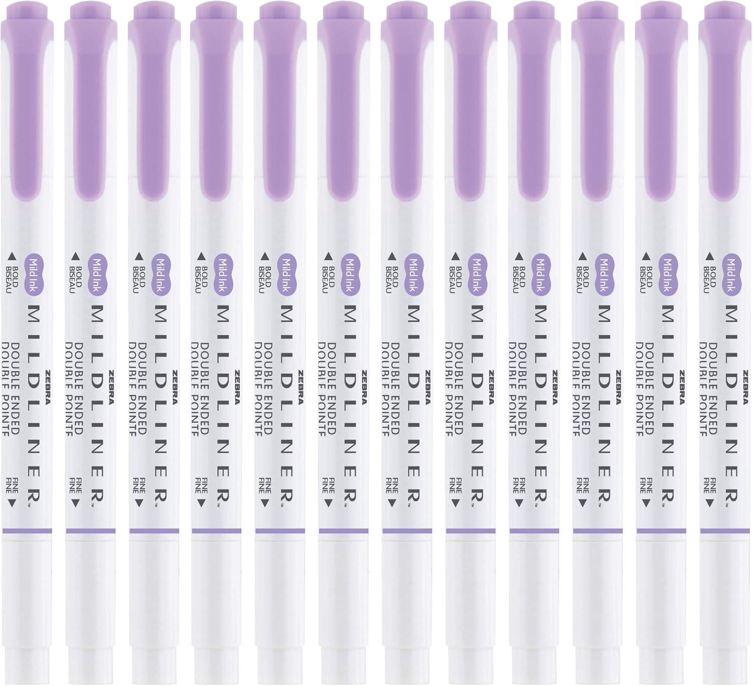Zebra Pen Mildliner Dual-Tip Highlighters, Broad and Fine Tips, Ideal for Bible Highlighting, No Bleed, School Supplies, Teacher Supplies, and Office Supplies, Mild Violet Ink, 12-Pack (78180upc)(Violet)