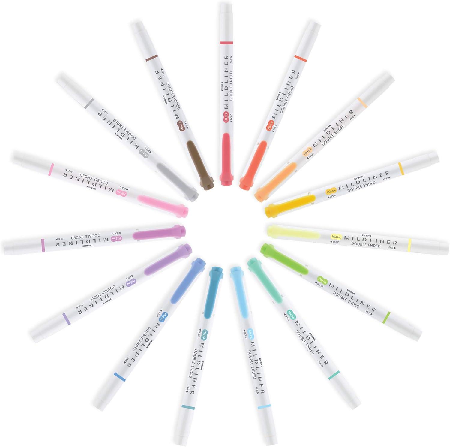 Zebra Pen Mildliner Dual-Tip Highlighter pens help you express your unique creativity with the convenience of two-sized tips in each pen. Each pen’s unique mild color provides a soft hue on the page, allowing you to layer with the water-resistant ink with ease. Beautiful pastel colors don't bleed through, so you needn't worry about the next page in your sketchbook. Includes 12 dual-tip mild violet ink highlighters. AP certified non-toxic. Keep a set of Mildliner Dual-Tip Highlighters in your school supplies, teacher supplies, or office supplies stash for creativity at your fingertips. Create personalized greeting cards, sketch out a new idea, or add dashes of precision color to any project. Add some beauty to your bullet journal, Bible study, or planner. Bring a touch of color to handmade cards, letters, and art presentations. Gift your favorite budding artist with a complete set. Excellent for marking up important passages in texts. Available in additional colors. Complete your creative kit with additional Zebra Pen artists’ instruments like Sarasa Fineliners, Zensations Technical and Calligraphy pens.