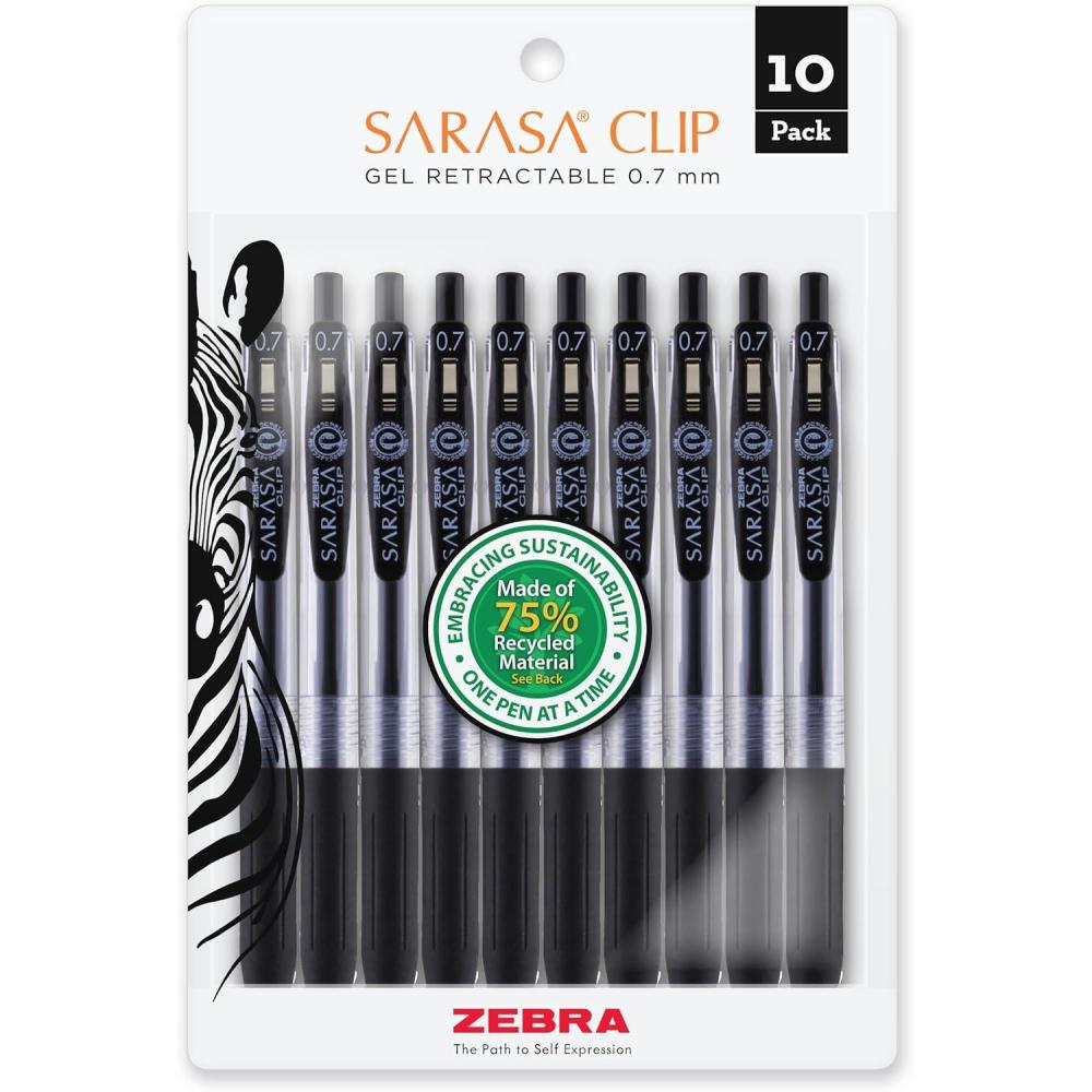Zebra Pen Sarasa Clip Retractable Gel Pen, Medium Point, 0.7mm, Black Ink, 10-Pack (41211)