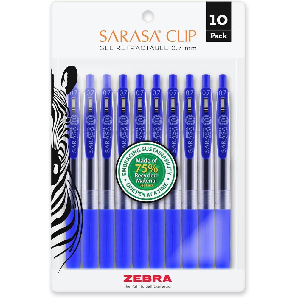 Zebra Pen Sarasa Clip Retractable Gel Pen, Medium Point, 0.7mm, Blue Ink, 10-Pack (42321)