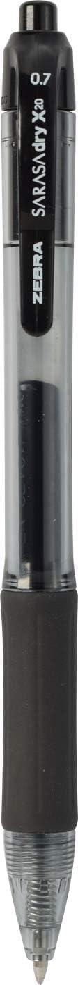 Zebra Pen Sarasa Dry X20 Retractable Gel Pens, 0.7mm Medium Point, Black Ink with Rapid Dry Ink Technology, Ideal for Office Supplies and School Supplies, 5-Pack (46855)(Black C)