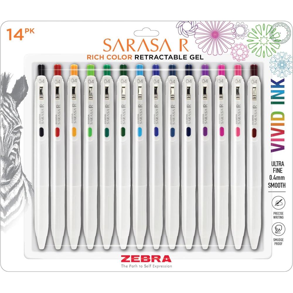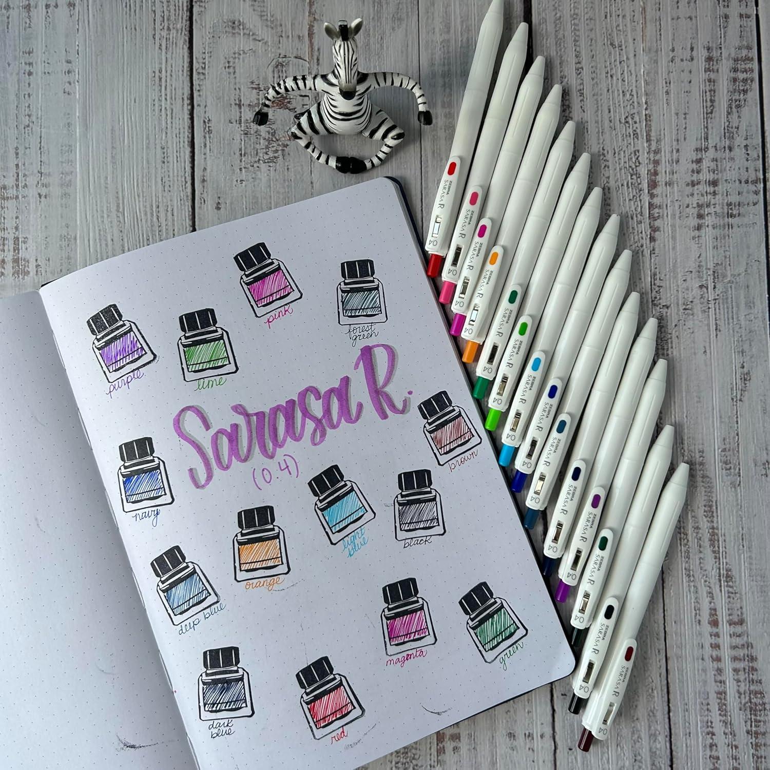 Introducing the Zebra Pen Sarasa R, the quintessential choice for those who demand precision and quality in their writing instruments. Whether you're an avid journaler, a student in need of reliable school supplies, or an artist searching for the perfect drawing pens, the Zebra Pen Sarasa R is designed to meet all your writing needs with exceptional performance and style. This premium retractable gel pen features an extra fine point of 0.4mm, perfect for creating intricate details and crisp, clean lines. Ideal for those who appreciate fine point pens, the Zebra Pen Sarasa R is a staple in journaling supplies, offering the precision needed for meticulous note-taking and artistic expression. As a leader in fine point gel pens, it provides smooth, consistent ink flow that enhances your writing experience. One of the standout features of the Zebra Pen Sarasa R is its ink quality. The ink is 27% darker than standard gel inks, providing rich and vibrant color that makes your writing stand out. This gel pen is not only visually impressive but also practical, with water-resistant and acid-free ink that ensures your notes and drawings are preserved over time. Additionally, the archival quality ink makes these journal pens ideal for creating lasting memories in your journals and diaries. Comfort is key during lengthy writing sessions, and the Zebra Pen Sarasa R delivers with its comfortable rubber grip. This ergonomic design reduces hand fatigue, allowing for prolonged use whether you're taking notes in class or sketching in your favorite journal. The sturdy retractable tip ensures that the pen is always ready for action, while the strong binder clip securely fastens the pen to pockets, notebooks, and planners, making it an ideal companion for both school and professional settings. The Zebra Pen Sarasa R is more than just a pen; it's an essential tool for anyone who values precision and reliability. Elevate your writing experience with this exemplary gel pen, and enjoy the perfect blend of functionality and elegance in your everyday writing tasks. Choose the Zebra Pen Sarasa R for a pen that delivers quality and an unparalleled writing experience.