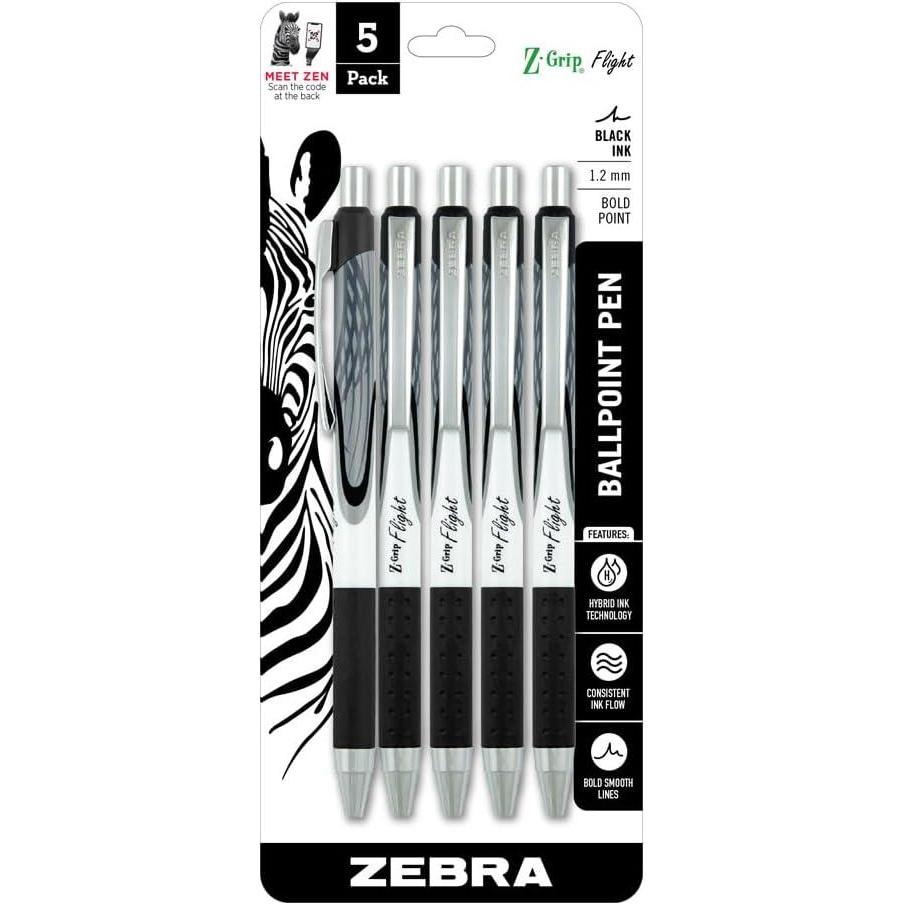 Introducing the Zebra Pen Z-Grip Flight Retractable Ballpoint Pen, a quintessential tool for all your writing needs. Whether you're equipping a classroom, stocking up on office supplies, or simply looking for the best ballpoint pens for personal use, this exceptional product is designed to meet your every requirement. Zebra pen Z-Grip Flight, a leader in the world of ink pens, offers a superior writing experience with its advanced features and stylish design. This pack of pens includes 5 premium-quality retractable pens, each equipped with a bold 1.2mm point, delivering smooth and consistent lines ideal for both detailed work and bold statements. The super-smooth, low viscosity ink of these ballpoint pens ensures an effortless glide across paper surfaces, providing an unparalleled writing experience. Notably, the ink dries quicker than traditional gels and emulsion inks, reducing smudges and enhancing productivity—a perfect addition to your teacher supplies, school supplies, or office supplies. The Zebra Pen Z-Grip Flight boasts a sleek, stylish barrel, complemented by a durable silver engraved metal clip, which not only enhances its visual appeal but also ensures secure attachment to notebooks, planners, or pockets. The wave rubber grip is specifically designed for writing comfort, allowing you to write for extended periods without discomfort, making it an ideal choice for students, teachers, and professionals alike. Available in red ink, these ink pens offer a vibrant hue that stands out on any page, providing clarity and precision in every stroke. The click pens mechanism ensures easy and quick deployment of the retractable pens, adding convenience to your daily routine. Choose Zebra Pen Z-Grip Flight for the ultimate writing experience. Whether you're jotting down notes, crafting important documents, or marking key information, these pens are the dependable choice for everyone seeking the best ballpoint pen available. Elevate your writing with Zebra pens—a testament to quality and style in every stroke.