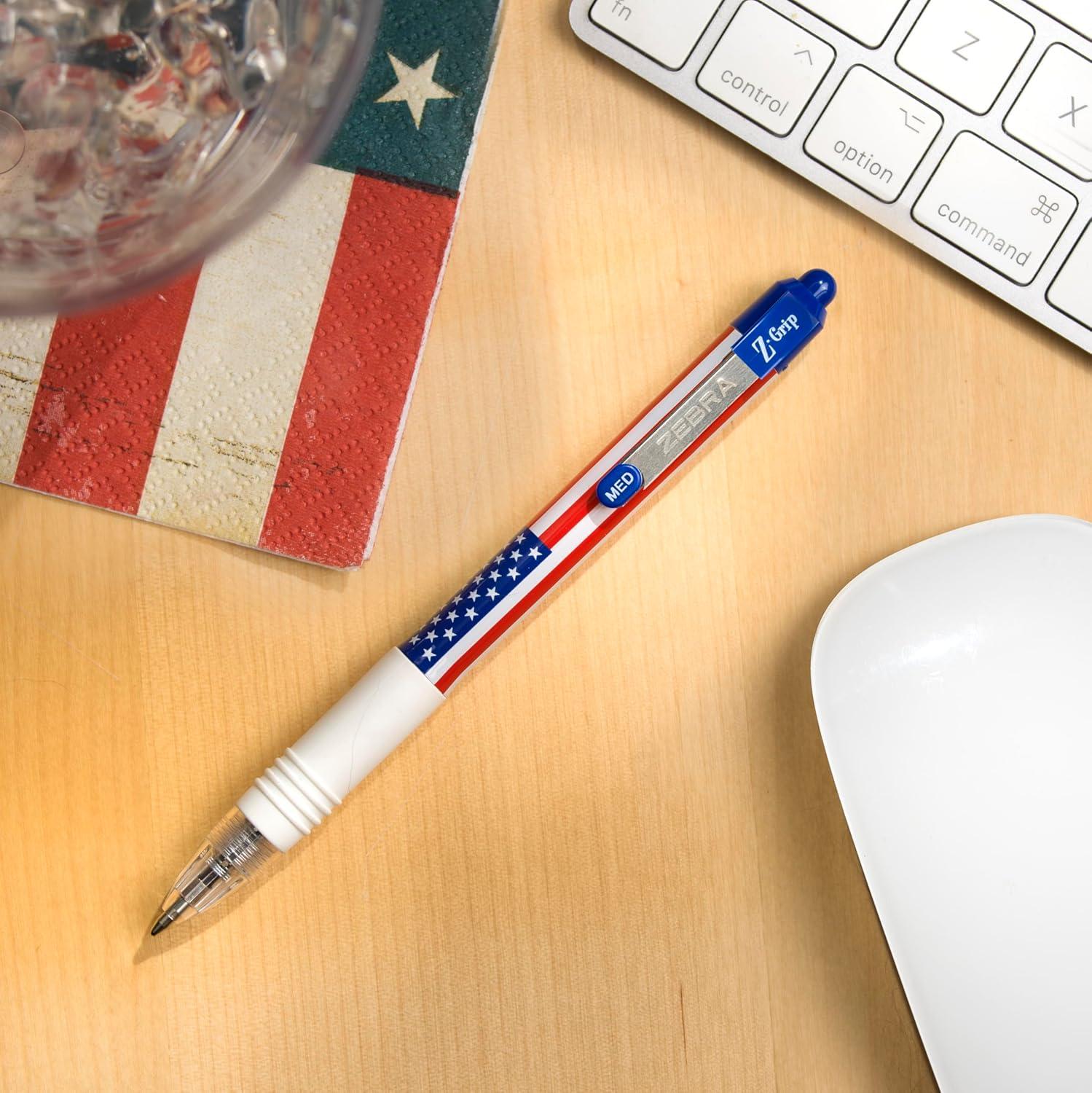 imageZebra Pen ZGrip Retractable Ballpoint Pen 12Pack American Flag Barrel Black Ink Medium Point 10mm Soft Grip Stylish Patriotic Design Smooth Writing Pens 21775BlackBlue A