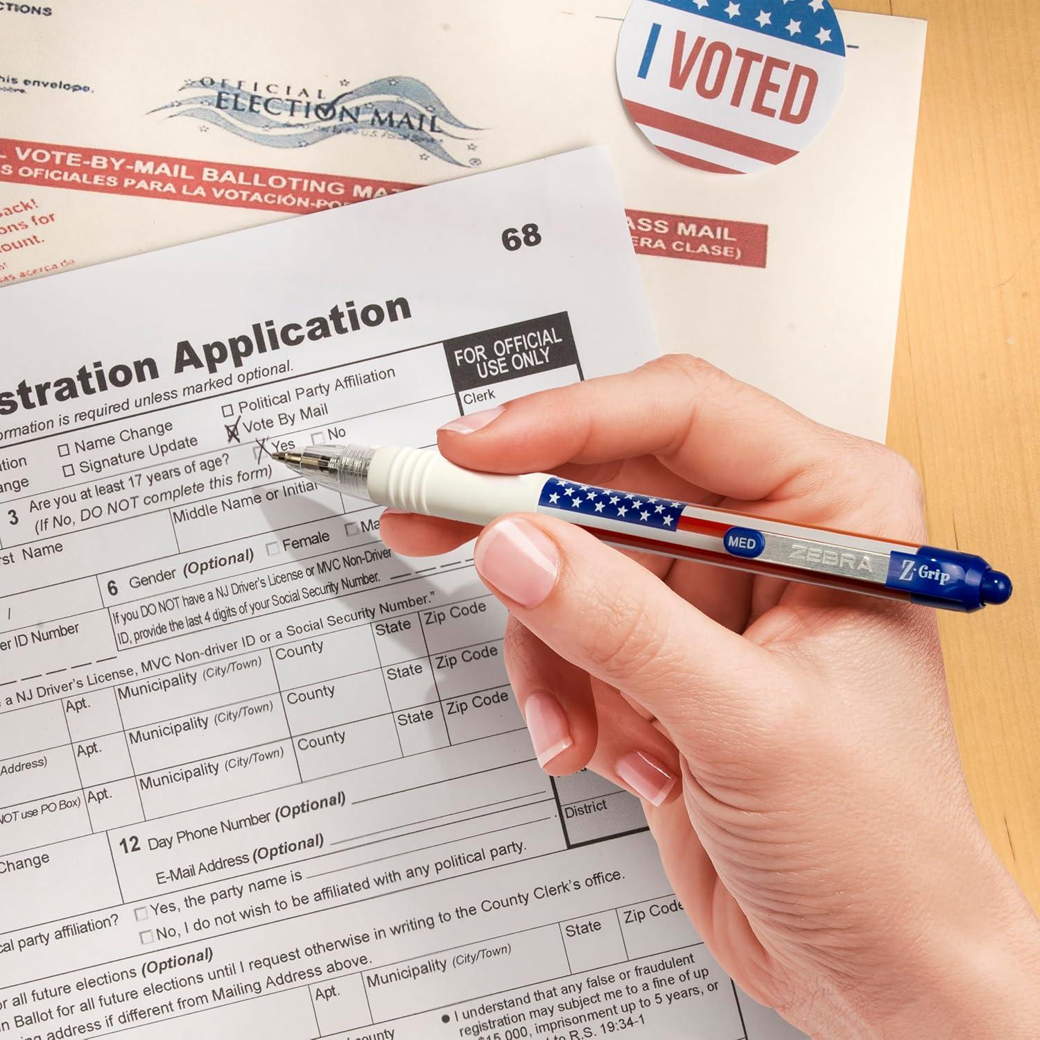 imageZebra Pen ZGrip Retractable Ballpoint Pen 12Pack American Flag Barrel Black Ink Medium Point 10mm Soft Grip Stylish Patriotic Design Smooth Writing Pens 21775Black D