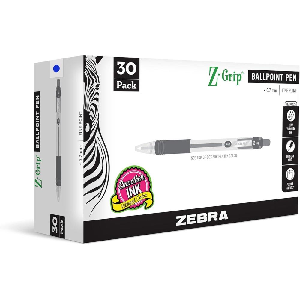 Zebra Pen Z-Grip Retractable Ballpoint Pen is a reliable customer favorite that’s kind to your pocketbook without compromising a pleasant writing experience. Enjoy the silky smooth flow of the low viscosity ink as you compose with the 0.7mm fine point. This 12-count pack of black ink pens provides you with a supply of reliable writing instruments for your office cabinet or home stash. Metal clip easily attaches to pockets, notebooks and folios. Distribute to your kids for homework, testing and journaling. Use for grocery lists, documents, correspondence and notes. Available in additional colors for easy color coding. Also this pen is ideal for your basic office supply needs. Enjoy this ballpoint for your everyday writing needs.