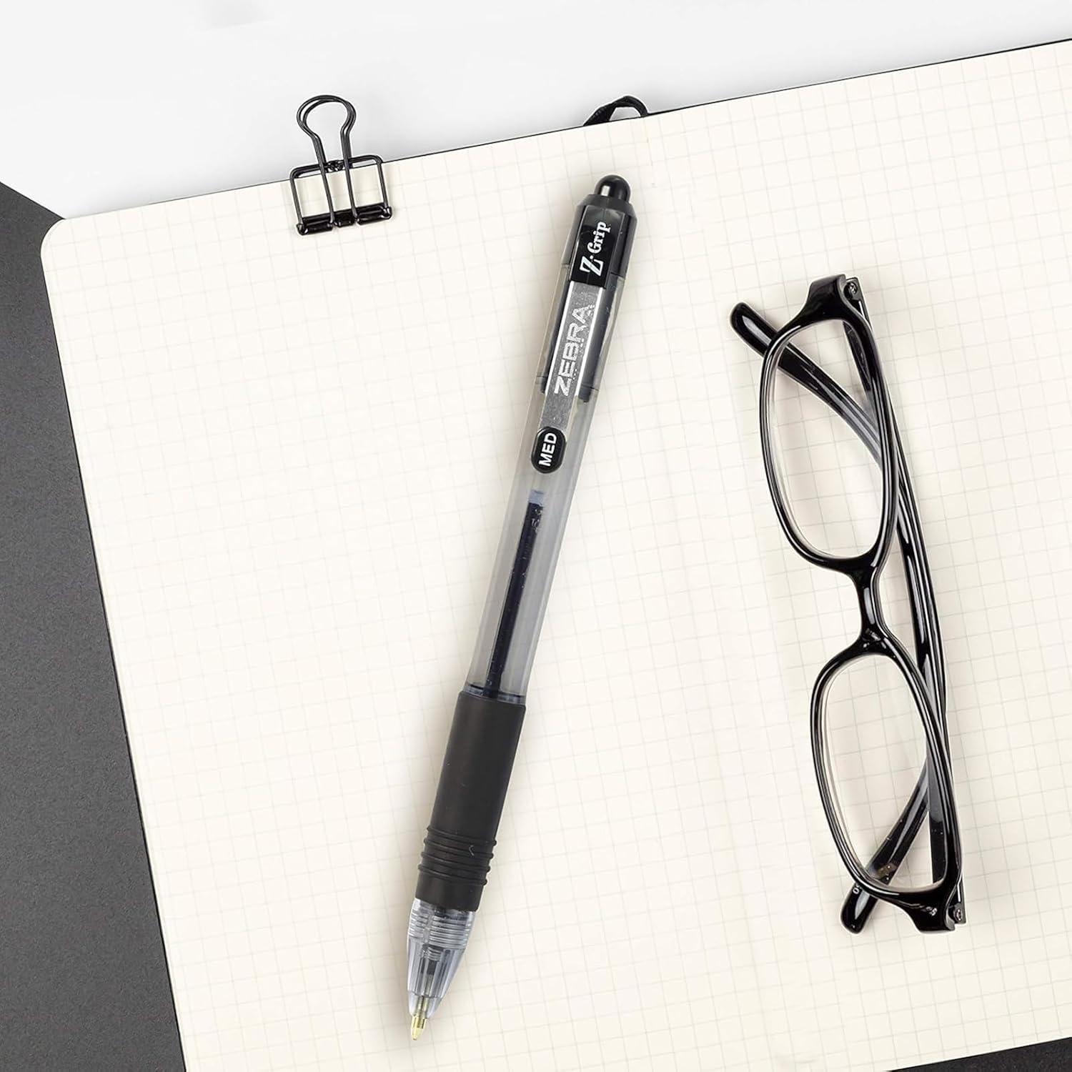 Introducing the Zebra Pen Z-Grip Retractable Ballpoint Pen, a quintessential addition to your collection of premium school supplies and office supplies. Designed for excellence, this 18-pack of assorted color ink pens ensures that you are always equipped with a reliable writing instrument, whether for academic endeavors or professional tasks. Perfect for those in need of pens for school, these assorted color ink pens are an indispensable part of college supplies, delivering an exceptional writing experience that caters to students, teachers, and professionals alike. Each pen features a 1.0mm medium point, offering a fine balance between precision and boldness. The low-viscosity ink of these ballpoint pens allows for a smooth, skip-free writing experience, facilitating quicker writing speeds as you take notes or draft documents. Ideal pens for journaling, these ink pens for writing are engineered to provide a consistent flow, ensuring that your thoughts are captured effortlessly on paper. The Zebra Pen Z-Grip is housed in a stylish plastic barrel that not only adds a touch of elegance to your pen collection but also ensures durability and longevity. Its soft, latex-free rubberized grip enhances comfort, allowing for prolonged writing sessions without discomfort or strain. This feature is particularly beneficial for teachers who require pens for extended periods, making these pens for teachers an essential part of teacher supplies. Adding to its convenience, each Z-Grip pen is equipped with a metal pocket clip, ensuring quick access and easy transportation. Whether you're slipping it into a pocket, notebook, or planner, this pack of pens provides the perfect blend of functionality and sophistication. Choose Zebra Pen Z-Grip for an unmatched writing experience that stands out in its category of pens. Elevate your collection of writing pens with these ink pens, tailored for those who value quality and reliability in every stroke.