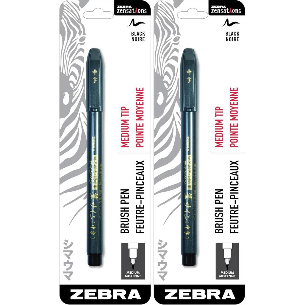 Zebra Pen Zensations Brush Pen, Medium Brush Tip, Black Water-Resistant Ink, 1-Pack(1 Count (Pack of 2))