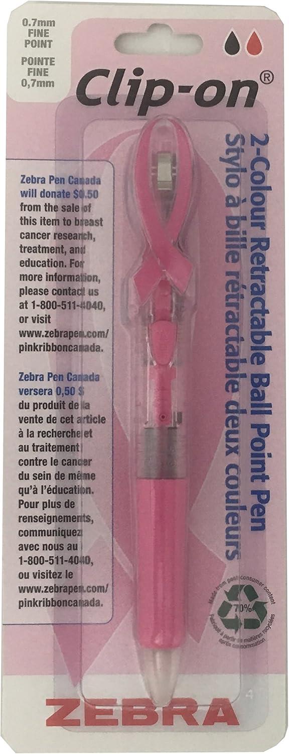 Dare to be different and maximize your writing experience while showing your support for BCA with our Zebra Z-Grip Max Bold retractable ballpoint pen. This pen features the iconic pink ribbon on a black translucent barrel to easily check ink levels and a metal clip for secure clasp. The wide barrel and rubber grip provide a comfortable writing experience. The pink ribbon is a small symbol in recognition of the brave efforts of those who battle breast cancer and those who seek a cure. Zebra Pen Corp. is a proud sponsor of the National Breast Cancer Foundation, Inc.